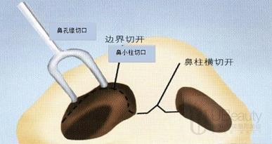 1.调整鼻翼软骨——适合鼻翼软骨宽,但软组织量正常的。